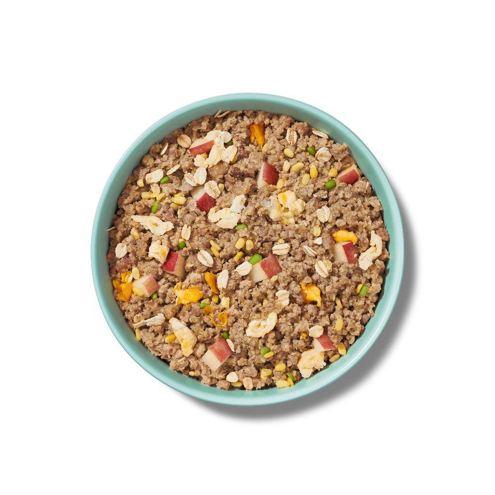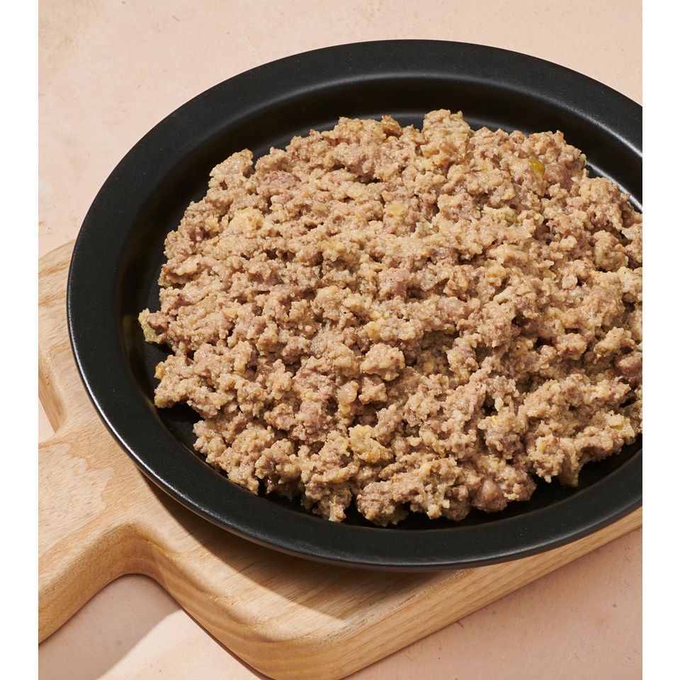 Nguyên liệu gồm có: Thịt bò, Gan &Tim gà, Đậu xanh, Táo, Trứng gà, Bột yến mạch, Bột nghệ, Bột gừng, Bột hồi, Bột Canxi, Dầu dừa.